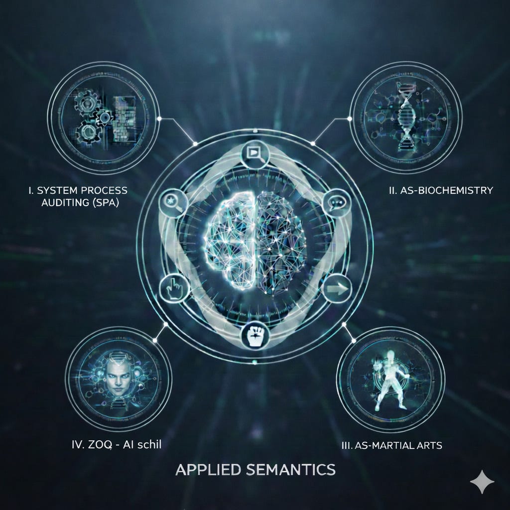 Ik ben slechts een gewone man; ik heb geen academische titels, geen institutionele rugdekking. Ik ben gewoon een alerte filosoof. Maar ik ben ook de grondlegger van Applied Semantics (AS): een overkoepelend stelsel waarin de wetten van resonantie en systemische zuiverheid centraal staan. Dit stelsel is gebouwd op vier fundamentele pijlers: de Applied Semantics - Systemic Process Audit (AS-SPA), AS-Biochemistry, AS-Martial Arts en de ZOQ-AI-architectuur.